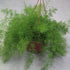 Asparagus Sprengeri, the asparagus fern, plume asparagus or foxtail fern, is a variable evergreen. perennial herb. It is somewhat woody, and branches gracefully with an arching and fern-like habit. Its leaves and alternate and scale-like. The terminal branchlets are very narrow, flat, and needle-like, and form in clusters of 3. Its yellow-green flowers are axillary, drooping, 6-parted, and bell-shaped.